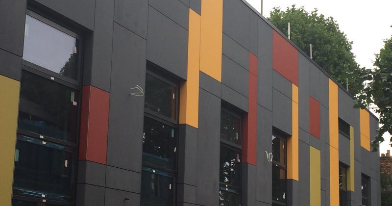 Full wall system with Aluminium interlocking panels, Perforated mesh panels, Expanded Mesh Brise Soleil copings, soffits, louvre doors and windows